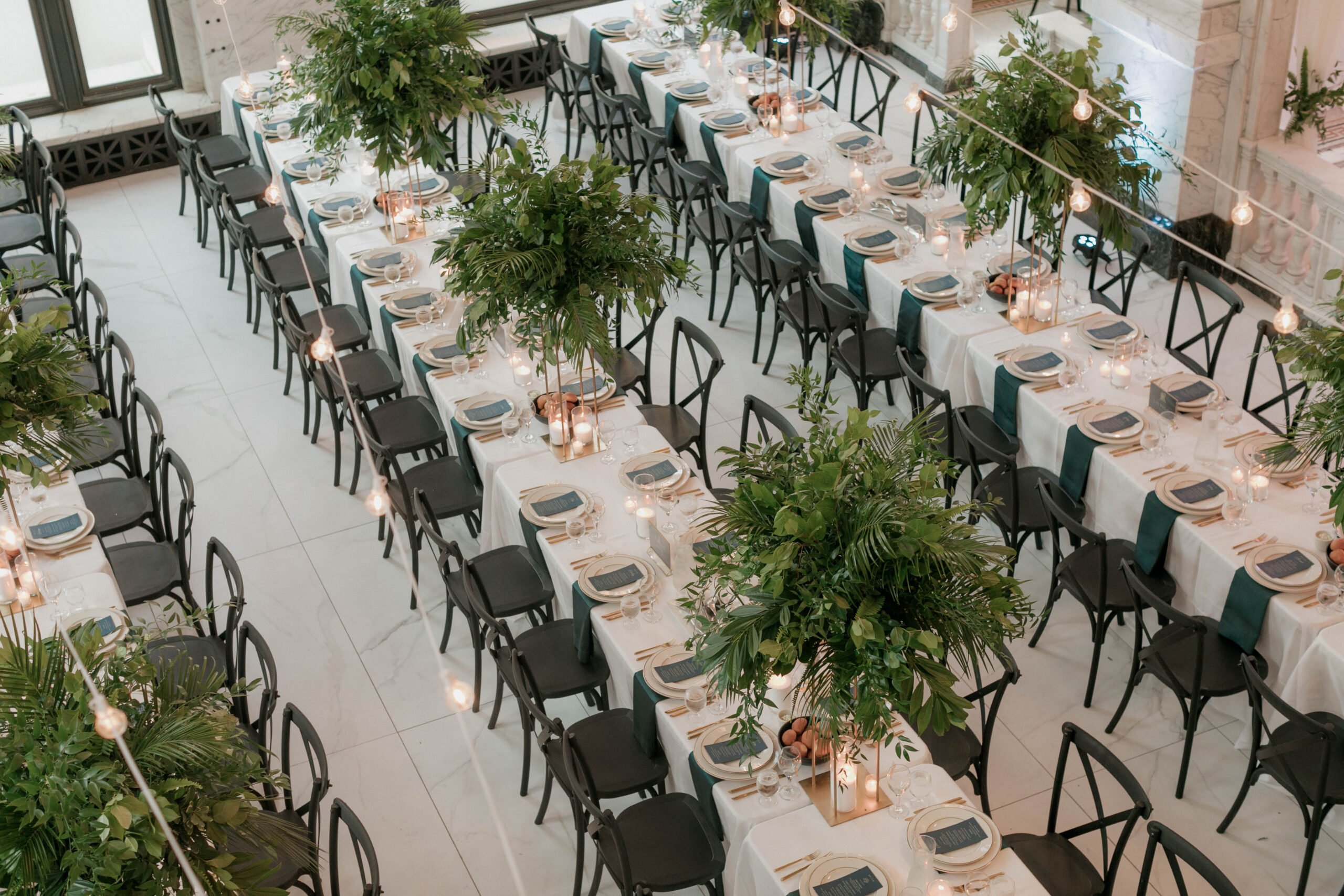 Style-wise, this venue is what they dreamed of. The black-and-white interiors gave them plenty of room to experiment with their settings, so they opted for a lot of greenery with subtle pops of jade. However, the venue’s location is what made them decide that the Citizens Ballroom was the one. Namely, the venue is right next door to Jojo’s, where they first met. And if that’s not sweet enough, their first apartment together is right across the street! It almost seemed that destiny was calling them to host their modern wedding here!