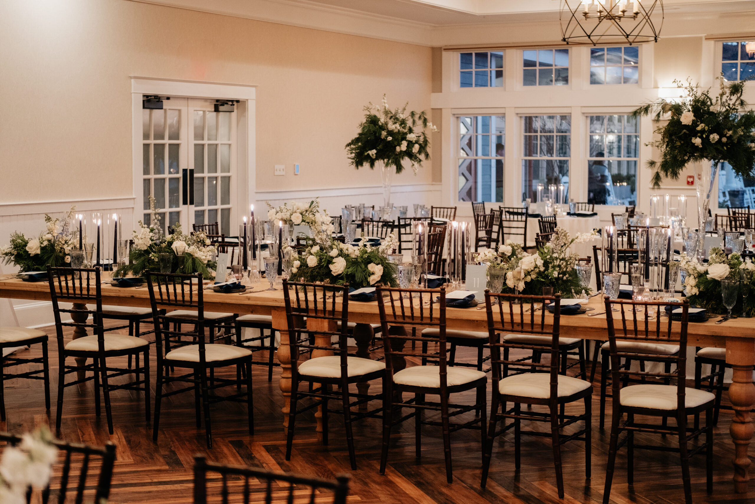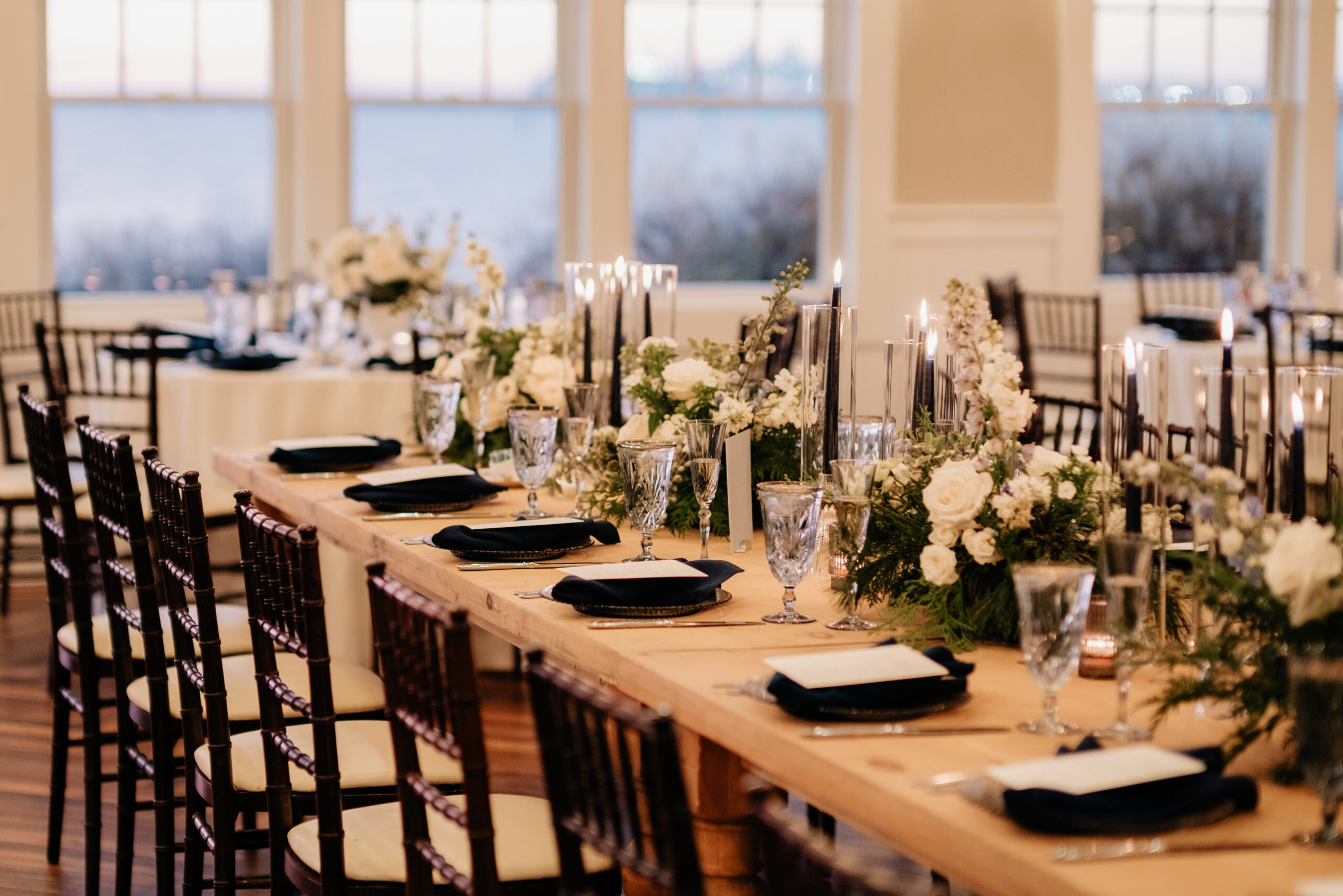 When Jillian and Tyler envisioned their perfect wedding day, they knew exactly what they wanted: minimalist elegance with a stunning French blue palette for their winter wedding at Chesapeake Bay Beach Club. At Moore & Co, we love working with couples who trust us to enhance their vision, and this December celebration was everything they dreamed of and more.
